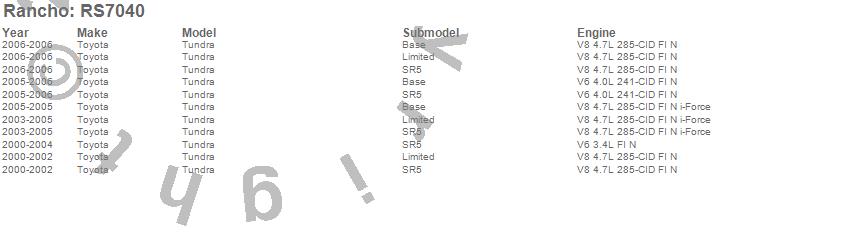 Below is an abreviated list of applications for the RS7000MT Monotube Shock.