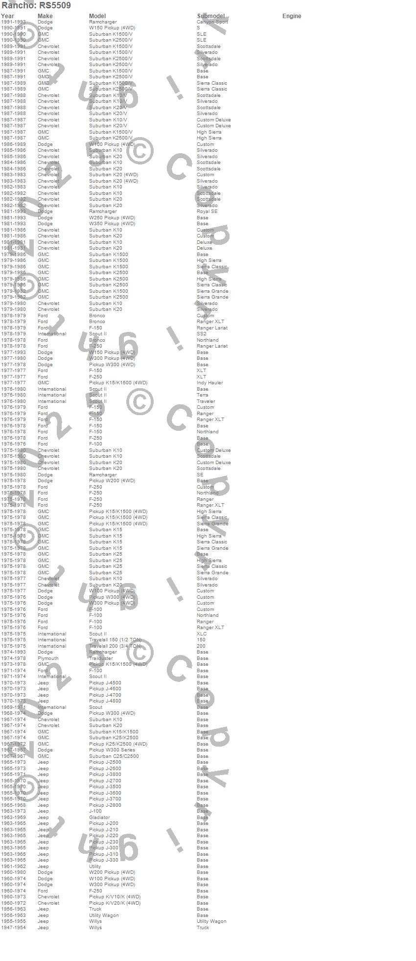 Bronco, C25/C2500 Suburban, F-100, F-150, F-250, Gladiator, J-100, J-200, J-210, J-220, J-230, J-2500, J-2600, J-2700, J-2800, J-300, J-310, J-330, J-3500, J-3600 more…