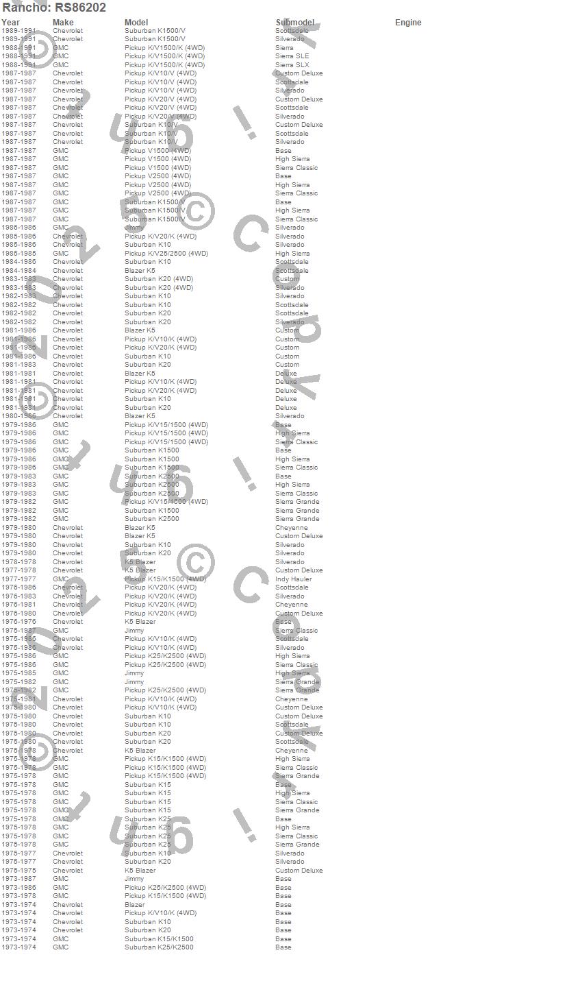 Blazer, Blazer K5, Jimmy, K10 Pickup, K10 Suburban, K15 Suburban, K15/K1500, K15/K1500 Suburban, K1500, K1500 Pickup, K1500 Suburban, K20 Pickup, K20 Suburban, K25 Pickup, K25 Suburban, K25/K2500 Pickup, K25/K2500 Suburban, K2500 Pickup, K2500 Suburban, V10 Pickup more…