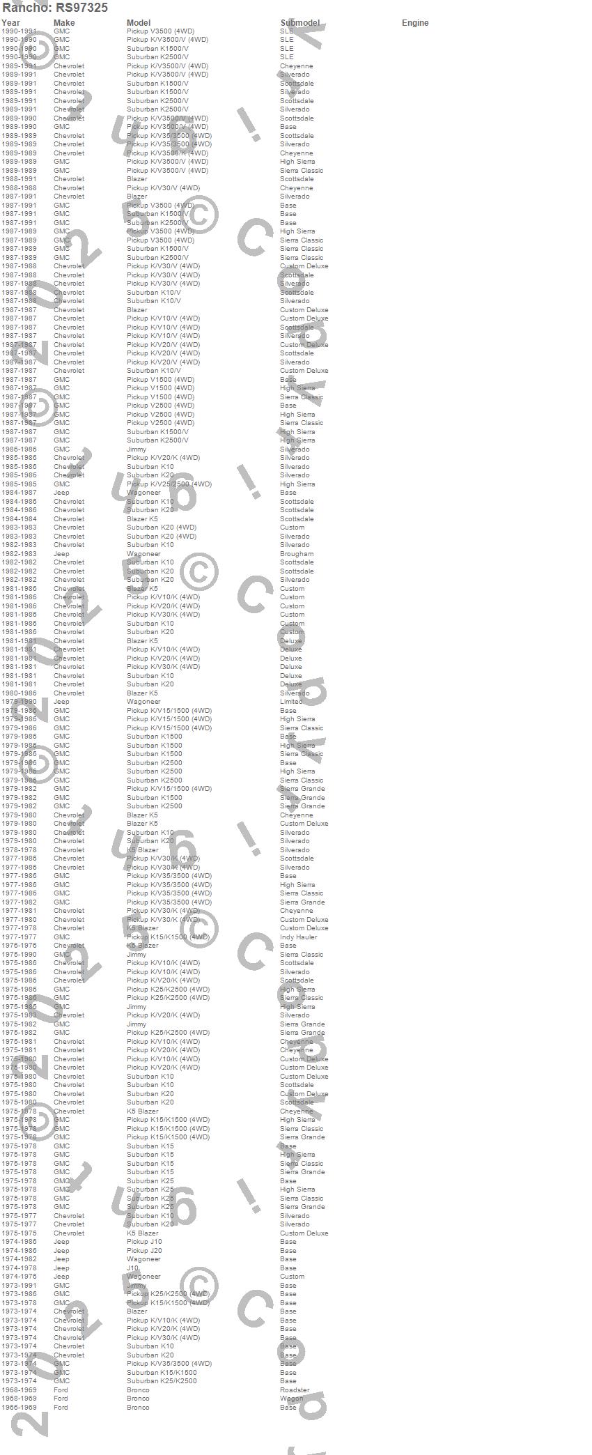 Blazer, Blazer K5, Bronco, J10, J20, Jimmy, K10 Pickup, K10 Suburban, K15 Suburban, K15/K1500, K15/K1500 Suburban, K1500, K1500 Suburban, K20 Pickup, K20 Suburban, K25 Pickup, K25 Suburban, K25/K2500 Pickup, K25/K2500 Suburban, K2500 Pickup more…