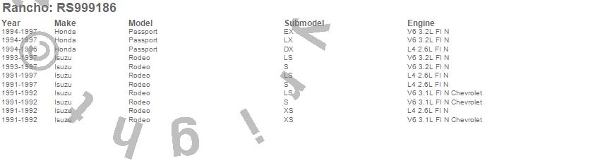 Below is an abreviated list of applications for the RS9000XL Shock Absorber.