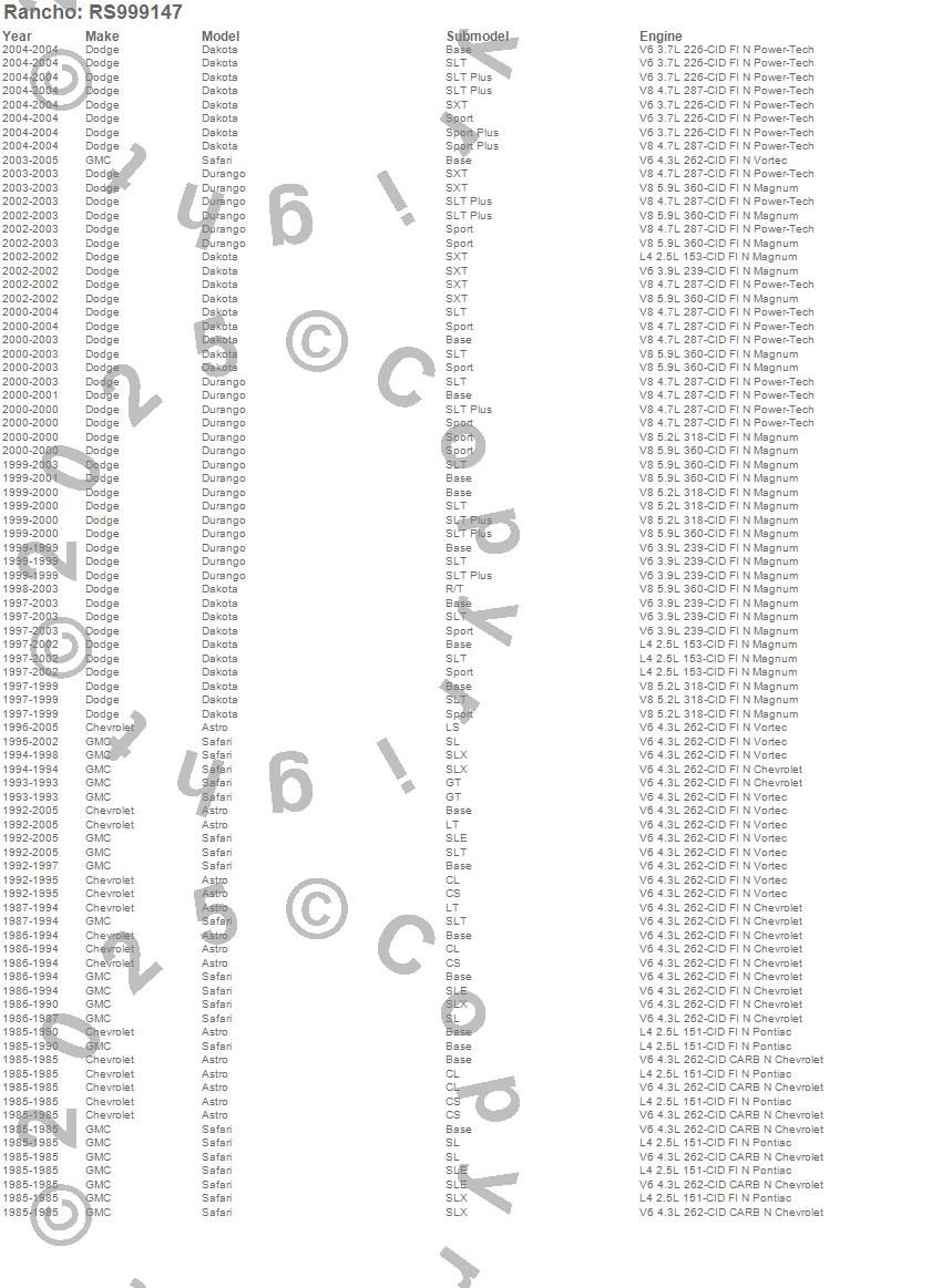 Astro, Dakota, Durango, Safari, Chevrolet, Dodge, GMC, 2005, 2004, 2003, 2002, 2001, 2000, 1999, 1998, 1997, 1996, 1995, 1994, 1993 more...