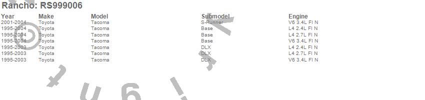 Below is an abreviated list of applications for the RS9000XL Shock Absorber.