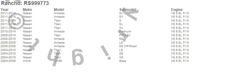 Below is an abreviated list of applications for the RS9000XL Series Suspension Strut Assembly.
