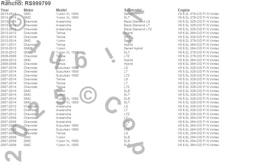 Below is an abreviated list of applications for the RS9000XL Series Suspension Strut Assembly.