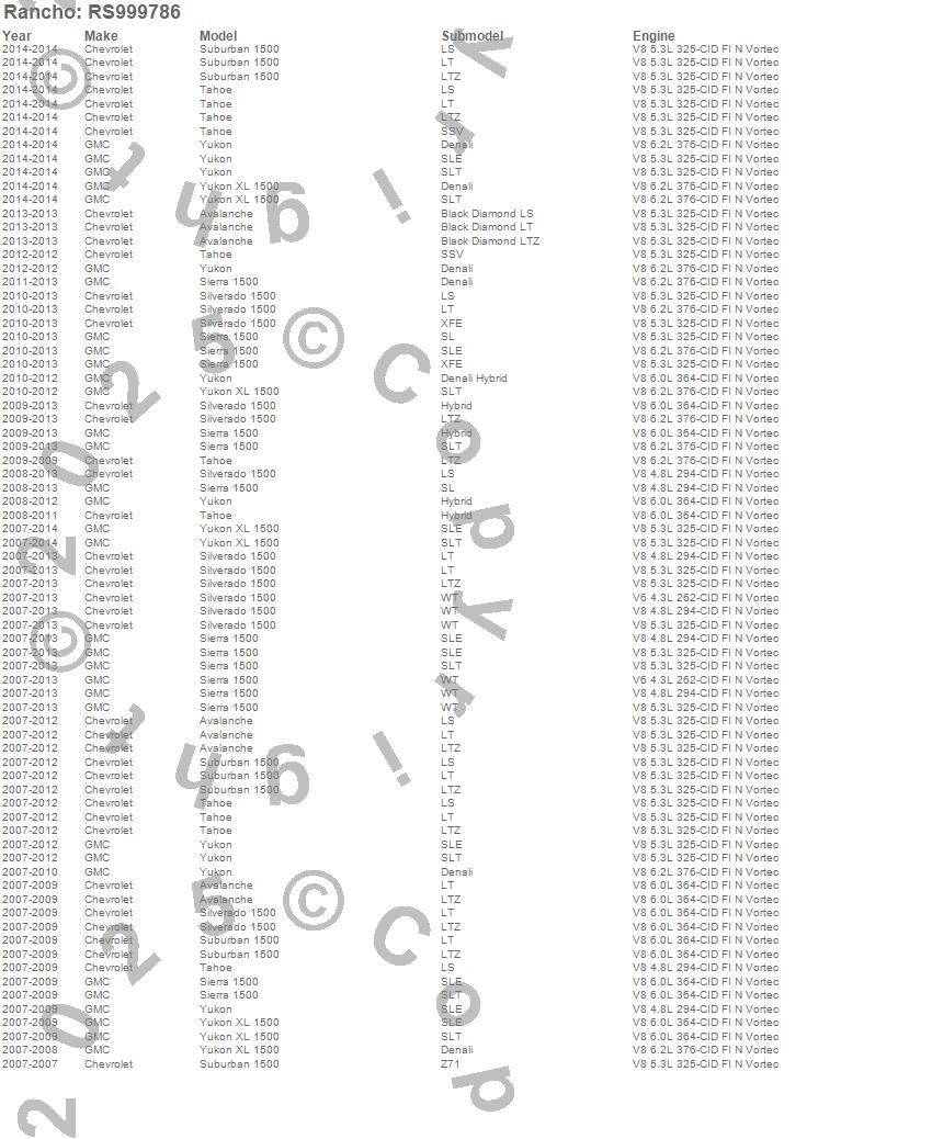 Below is an abreviated list of applications for the RS9000XL Series Suspension Strut Assembly.