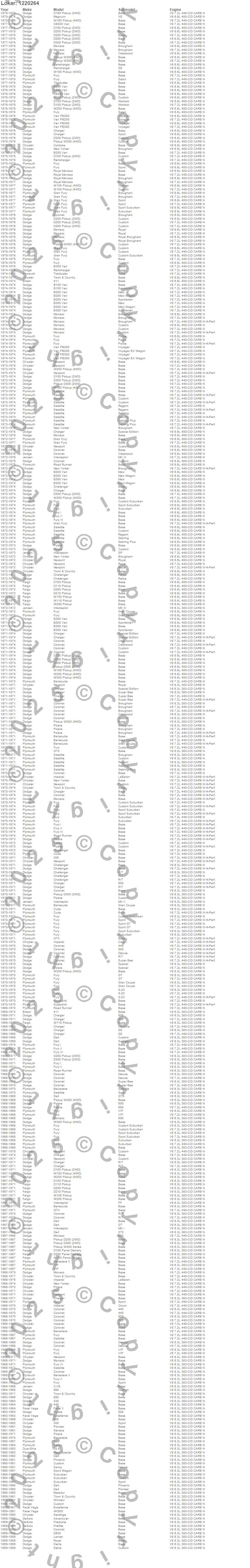 Below is an abreviated list of applications for the Anchor Tight Locking Flexible Engine Dipstick.