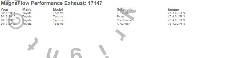 Below is an abreviated list of applications for the Off Road Pro Series Cat-Back Exhaust System.