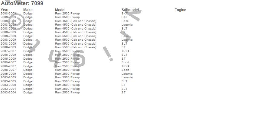Below is an abreviated list of applications for the Ram Factory Match Triple Pillar Gauge Kit.