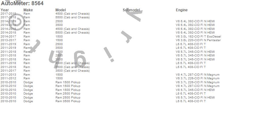 Below is an abreviated list of applications for the Dodge Factory Match Electric Fuel Pressure Gauge.