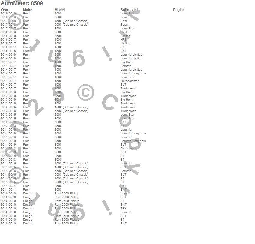 Below is an abreviated list of applications for the Dodge Factory Match Boost Gauge.