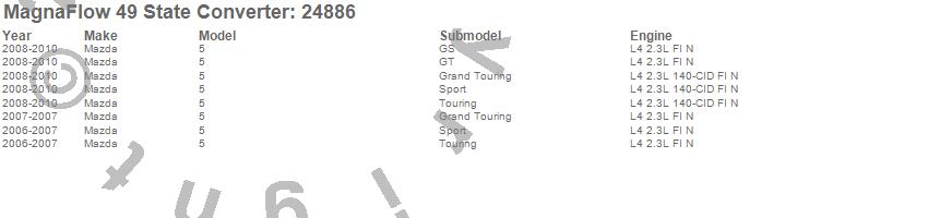 Below is an abreviated list of applications for the Direct Fit Catalytic Converter.