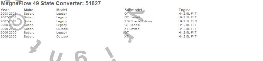 Below is an abreviated list of applications for the Direct Fit Catalytic Converter.