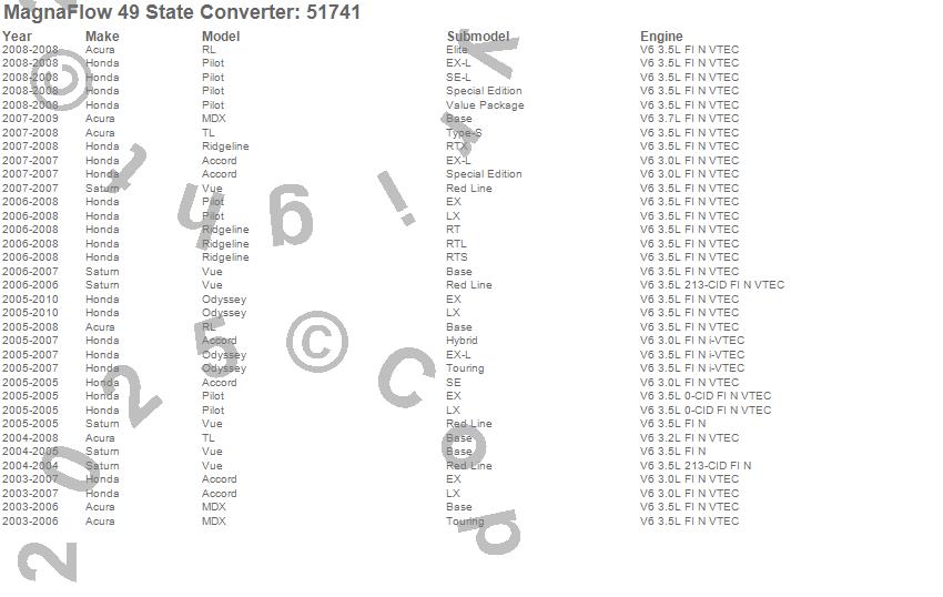 Below is an abreviated list of applications for the Direct Fit Catalytic Converter.