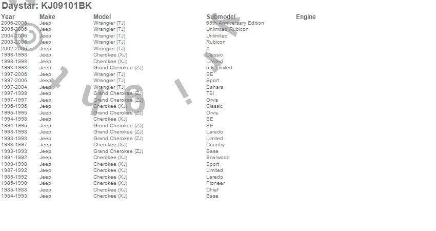 Cherokee (XJ), Grand Cherokee (ZJ), Wrangler (LJ), Wrangler (TJ), Jeep, 2006, 2005, 2004, 2003, 2002, 2001, 2000, 1999, 1998, 1997, 1996, 1995, 1994, 1993, 1992 more…