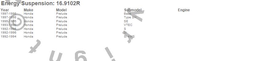 Below is an abreviated list of applications for the Bump Stop Set.