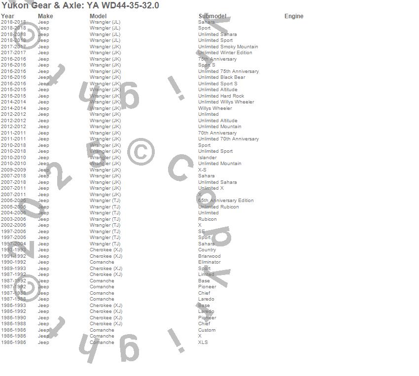 Below is an abreviated list of applications for the Axle Shaft.