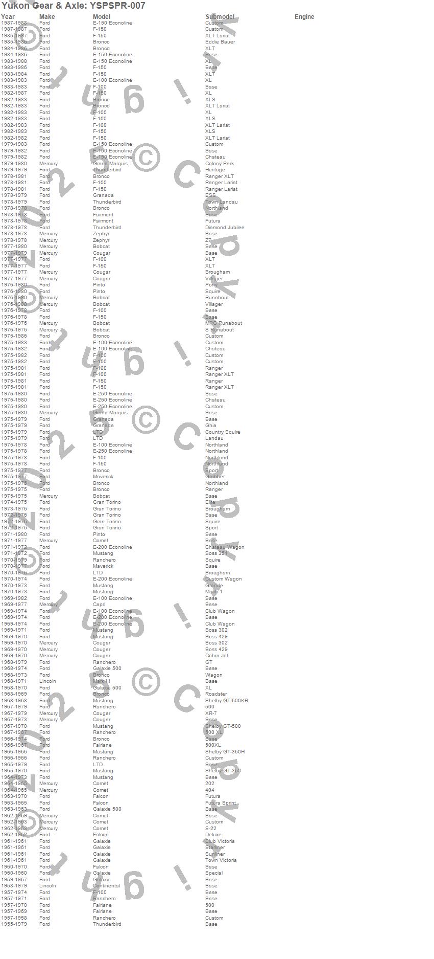 Bronco, Capri, Comet, Cougar, E-100 Econoline, E-100 Econoline Club Wagon, E-150 Econoline, E-150 Econoline Club Wagon, E-200 Econoline, F-100, F-150, Fairlane, Fairmont, Falcon, Falcon Sedan Delivery, Galaxie, Gran Torino, Granada, Grand Marquis, LTD more…