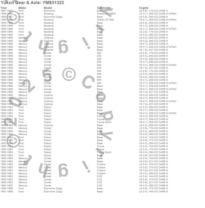 Below is an abreviated list of applications for the Yukon Mighty Axle Seal.