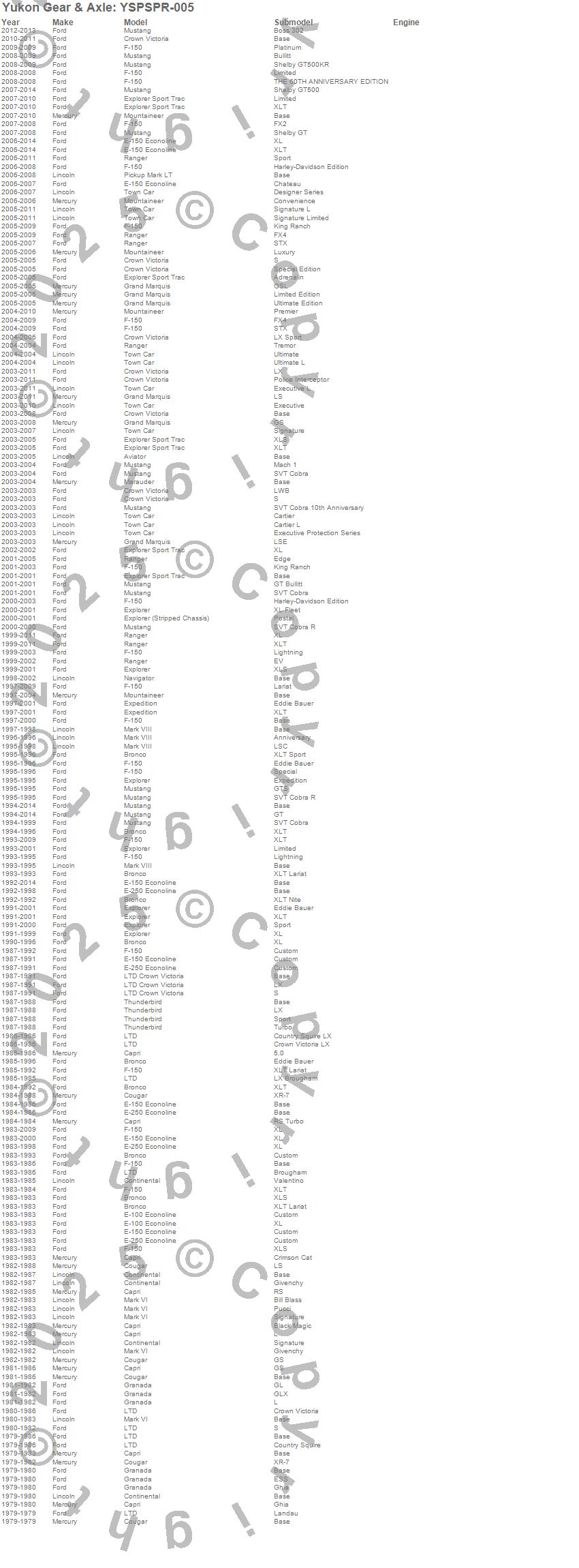 Aviator, Bronco, Capri, Continental, Cougar, Crown Victoria, E-100 Econoline, E-100 Econoline Club Wagon, E-150 Econoline, E-150 Econoline Club Wagon, E-250 Econoline, E-250 Econoline Club Wagon, Expedition, Explorer, Explorer Sport Trac, F-150, Granada, Grand Marquis, LTD, LTD Crown Victoria more…