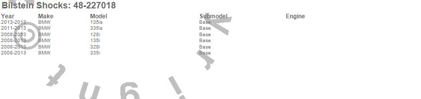 Below is an abreviated list of applications for the Bilstein Clubsport Series Lowering Kit. 128i, 135i, 135is, 328i, 335i, 335is, BMW, 2013, 2012, 2011, 2010, 2009, 2008 more…