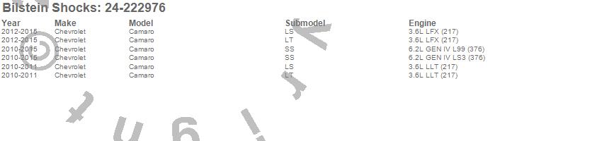 Below is an abreviated list of applications for the B6 Series HD Shock Absorber.