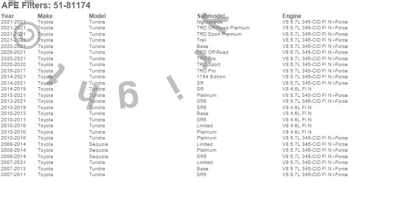 Advanced Flow Engineering, Inc. (aFe) produces high flow, high performance air filters & intake systems for the automotive industry. Founded in April, 1999, aFe was created to address an obvious need in the automotive aftermarket industry: a lack of choice for a high performance aftermarket air filter. We are a team of engineers, machinists, production and sales people who believe in the product we design. We each have years of experience in our respective positions and together work to ensure that we have the best product on the market. Our purpose was not just to be another vendor that offers air filters, we chose to pay attention to those finer details that set an aFe filter apart from the competition. We currently offer aftermarket air filters for passenger cars, light trucks and SUV's. We also have many applications for round racing and universal clamp-on filters. To find your particular application, please use our new search engines. If you do not see your particular application listed, please contact us.