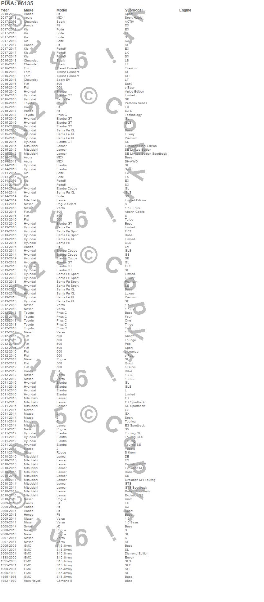 Below is an abreviated list of applications for the Aero Vogue Premium Hybrid Silicone Wiper Blade.