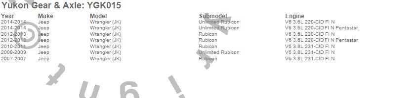 Below is an abreviated list of applications for the Yukon Gear And Install Kit.