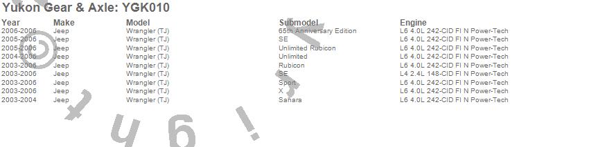 Below is an abreviated list of applications for the Yukon Gear And Install Kit.