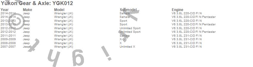Below is an abreviated list of applications for the Yukon Gear And Install Kit.