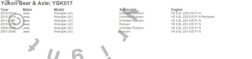 Below is an abreviated list of applications for the Yukon Gear And Install Kit.