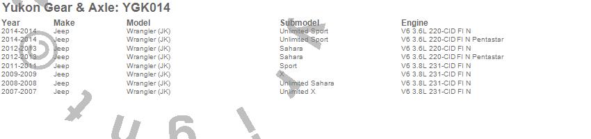Below is an abreviated list of applications for the Yukon Gear And Install Kit.