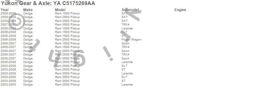 Below is an abreviated list of applications for the Axle Shaft. Ram 1500, Ram 2500, Ram 3500, Dodge, 2009, 2008, 2007, 2006, 2005, 2004, 2003 more…