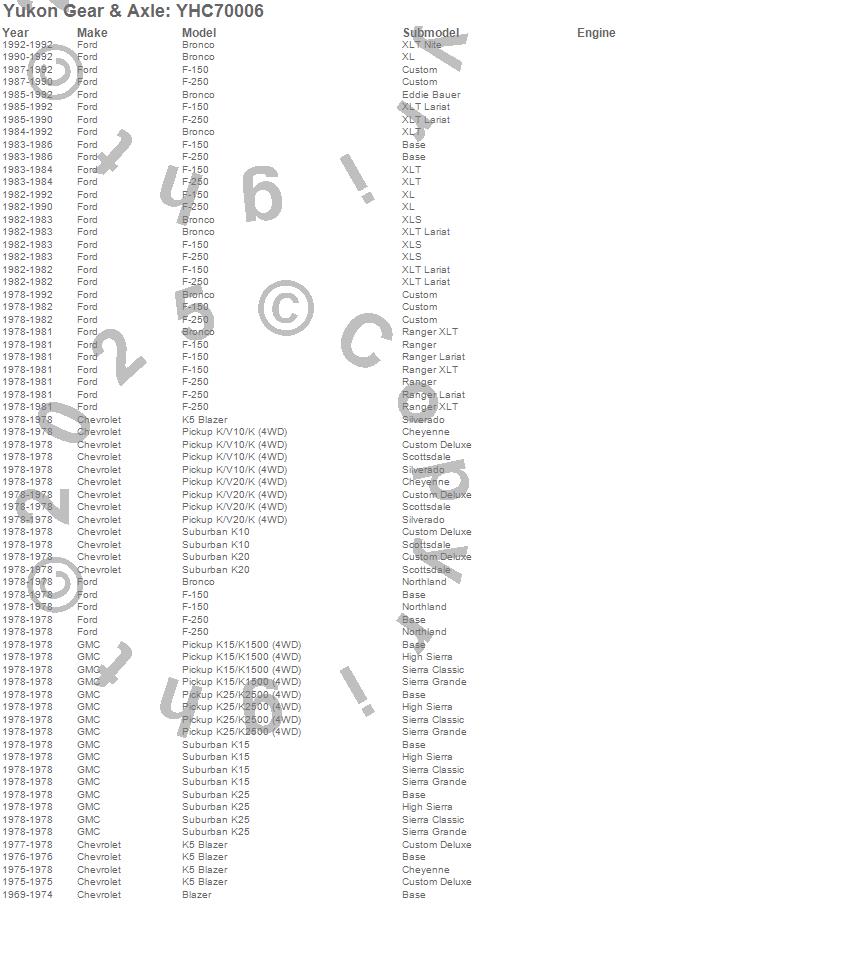 Below is an abreviated list of applications for the Yukon Hardcore Locking Hubs.