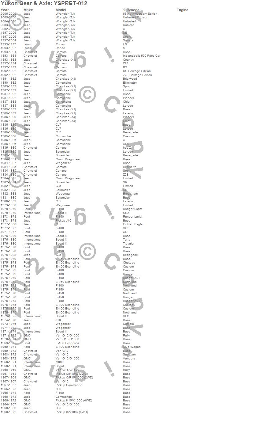 Below is an abreviated list of applications for the Axle Bearing Retainer.