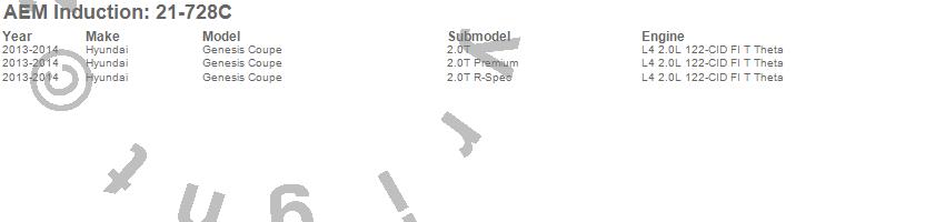 Below is an abreviated list of applications for the Cold Air Induction System.