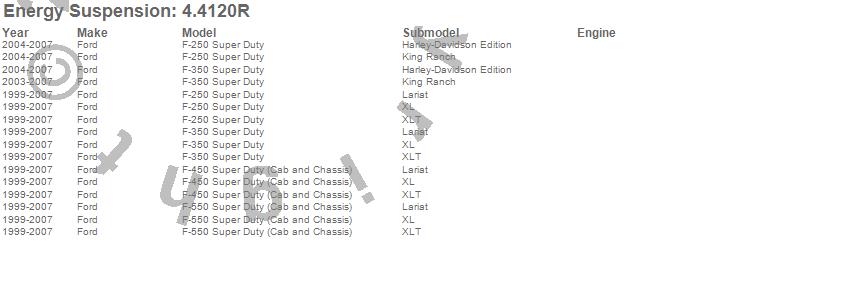 Below is an abreviated list of applications for the Body Mount Set.