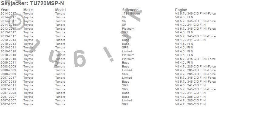 Below is an abreviated list of applications for the Suspension Lift Kit w/Shock.