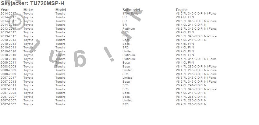 Below is an abreviated list of applications for the Suspension Lift Kit w/Shock.