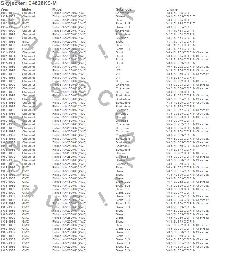 Below is an abreviated list of applications for the Suspension Lift Kit w/Shock.
