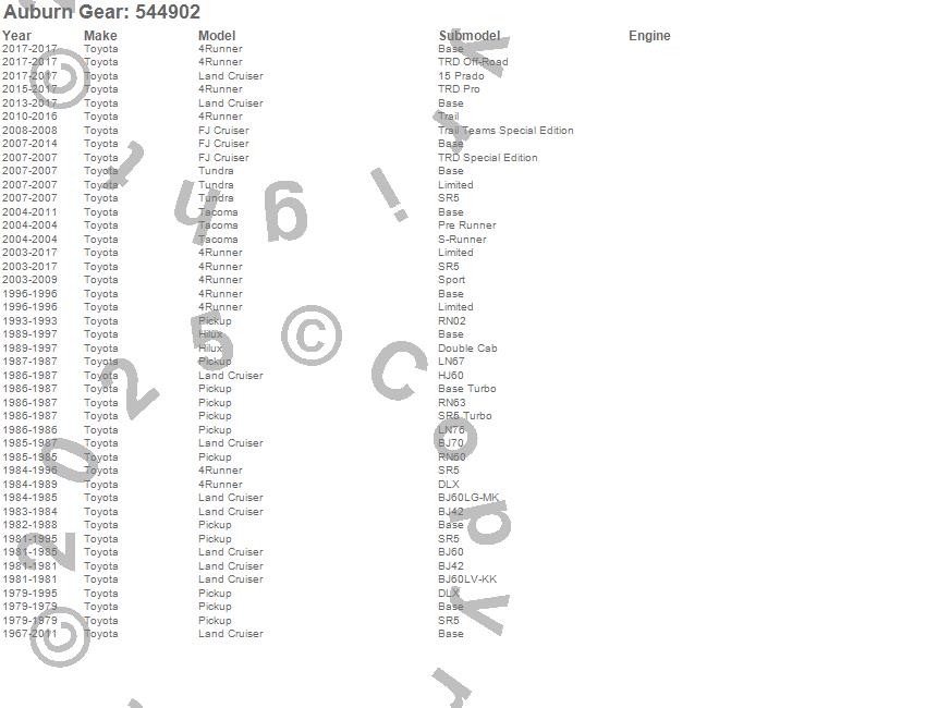 Below is an abreviated list of applications for the Auburn Gear MAX Lock Differential.