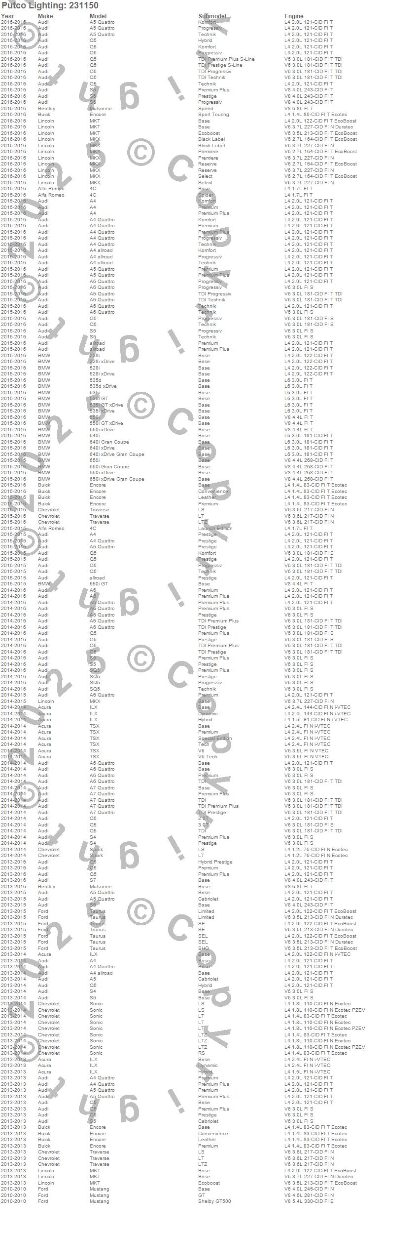 Below is an abreviated list of applications for the LED Festoon Stick Replacement Bulb.