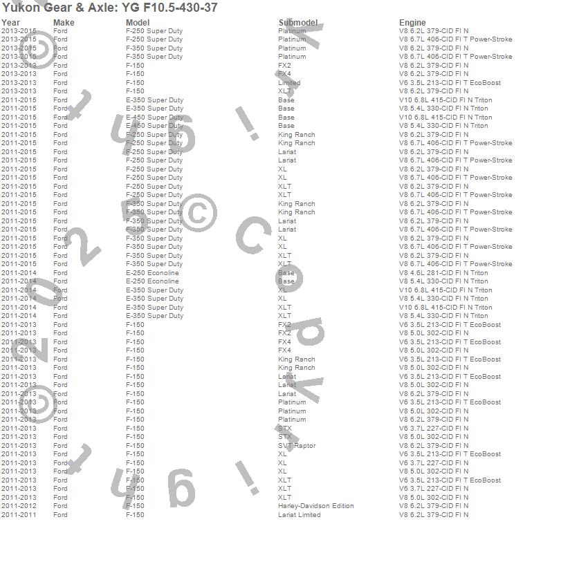 Yukon Gear & Axle Ring And Pinion Gear Set # YG F10.5-430-37 - 10.5 in. 14 Bolt - Rear - 4.30 Ratio - 37 Spline
