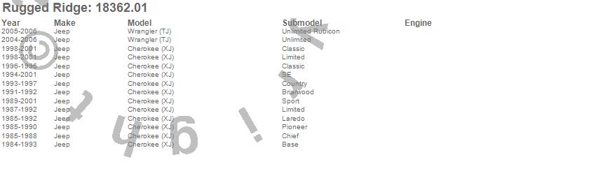 Cherokee (XJ), Jeep, 2001, 2000, 1999, 1998, 1997, 1996, 1995, 1994, 1993, 1992, 1991, 1990, 1989, 1988, 1987, 1986, 1985, 1984 more…