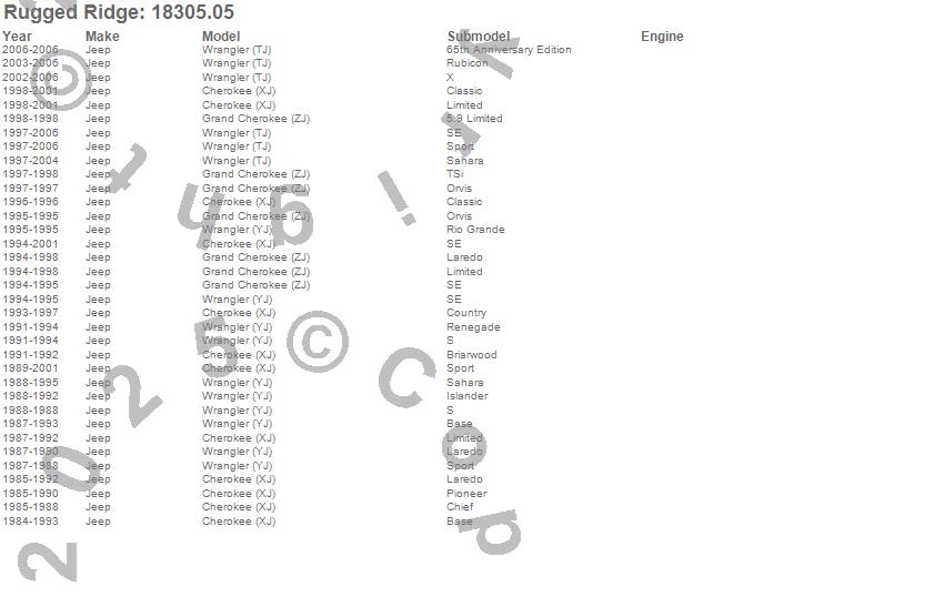 Cherokee (XJ), Grand Cherokee (ZJ), Wrangler (TJ), Wrangler (YJ), Jeep, 2006, 2005, 2004, 2003, 2002, 2001, 2000, 1999, 1998, 1997, 1996, 1995, 1994, 1993, 1992 more…