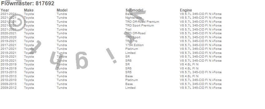 Below is an abreviated list of applications for the Outlaw Series Cat Back Exhaust System.