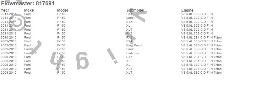 Below is an abreviated list of applications for the Outlaw Series Cat Back Exhaust System.