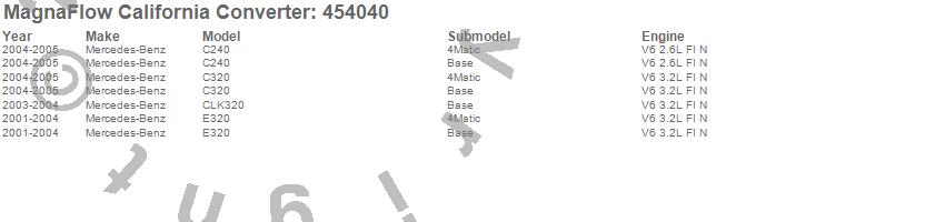 Below is an abreviated list of applications for the Direct Fit California Catalytic Converter.