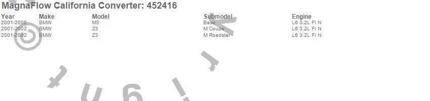 Below is an abreviated list of applications for the Direct Fit California Catalytic Converter.